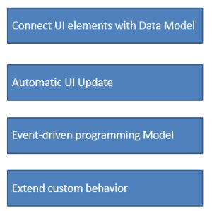 - Automatically update the UI when the Data Model is changed, when the UI is changed then the Data Model is changed automatically.