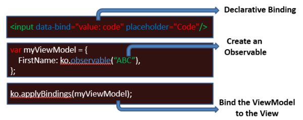 Let's understand the MVVM pattern. It will help you to understand how Knockout.js data binding is done between your JavaScript and HTML.