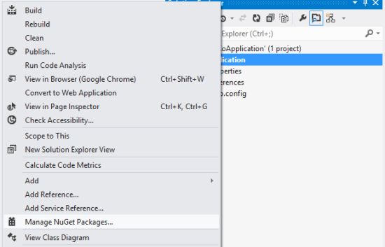 Go to Manage NuGet Package by right-clicking on the project and from the context menu select the option for Manage Nuget Package.