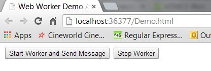 Now click on the second button that says "Stop Worker" and you can see your worker is stopped and your first button is disabled for the time until you refresh your page.