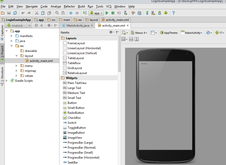 By default, Hello world will be displayed and the application will look like this with MainActivity.