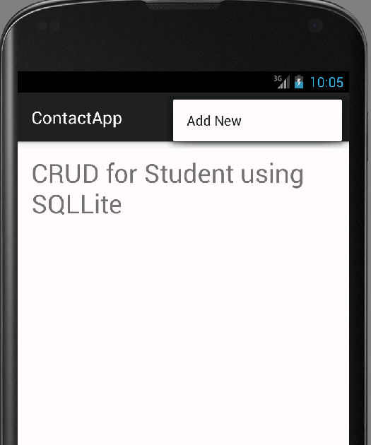 Add another java class called DisplayContact.java. Add controls to add and display a student detail like name, place, email, phone and city.