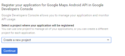 Click on CONTINUE and create a new project.