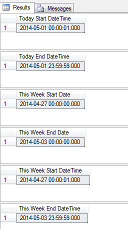 SELECT dateadd(s,1,DATEADD(wk, DATEDIFF(wk, 6, GETUTCDATE()) + 1, 6)) 'Next Week Start DateTime'