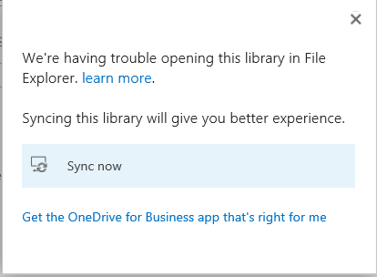 We clicked on the “Open with Explorer” option in IE, and sync dialog appeared: