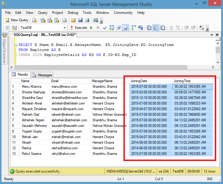 Now I will write a join query to fetch data from both tables.