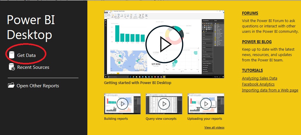 Start BI Desktop and click on the Get Data link in the left side bar as you can see in Figure 1.