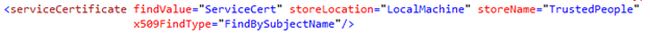 The preceding tag will exist under the service behavior, the findValue attribute holds the name of the certificate that is available on the localmachine. The local machine certificate store is local to the computer and is global to all users on the computer. This certificate store is located in the registry under the HKEY_LOCAL_MACHINE root, X509FindType identifies the type of value provided in the findValue parameter. Kindly refer to the attachment to find the tool for creating certificates on your computer.