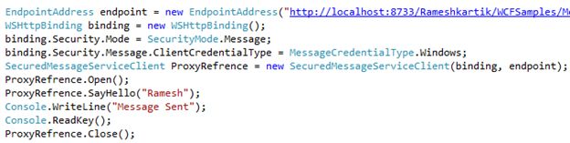Basics on WCF Security" if you are not good at the basics of WCF Security. In this article we will see how authentication can be done using Windows Authentication over message security, custom username and password authentication over the message security and finally the Mutual X509 authentication over the message security.