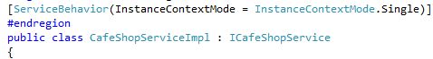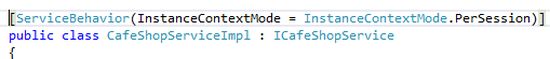 The preceding is the declaration of InstanceContextMode->Session. You need to use the service behavior attribute at the top of the service implementation class.