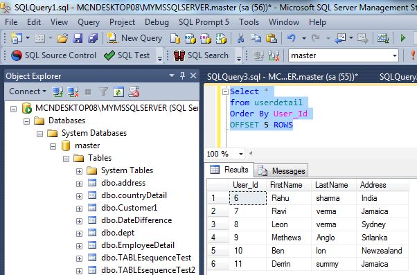 - INSERT TABLEsequenceTest2 (Name)VALUES ('Rahul Kumar');
