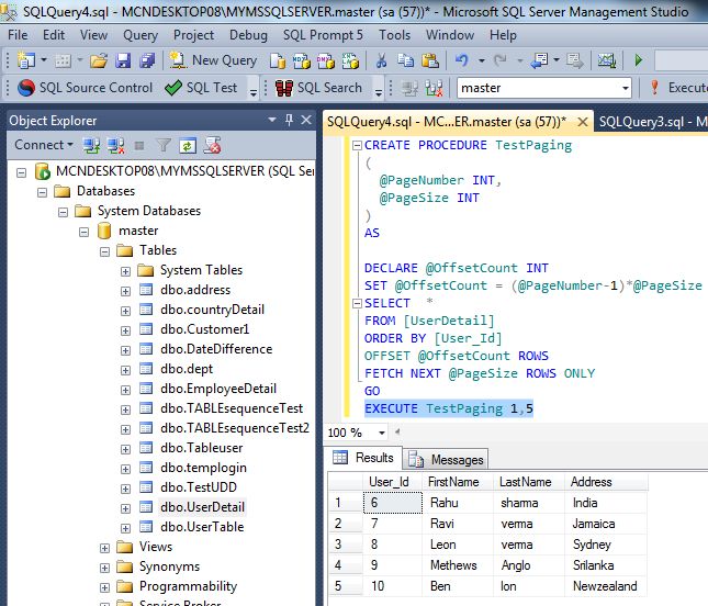In the earlier versions of SQL Server, if you use a GridView then you set its pagination property. However if you want to do this from the server side then you need to use the row_number() function and supply the specific range of rows and also retrieve the current page data from the database using a temp table. The ORDER BY OFFSET and FETCH NEXT ONLY keywords are one of the major features introduced in SQL Server 2012.
