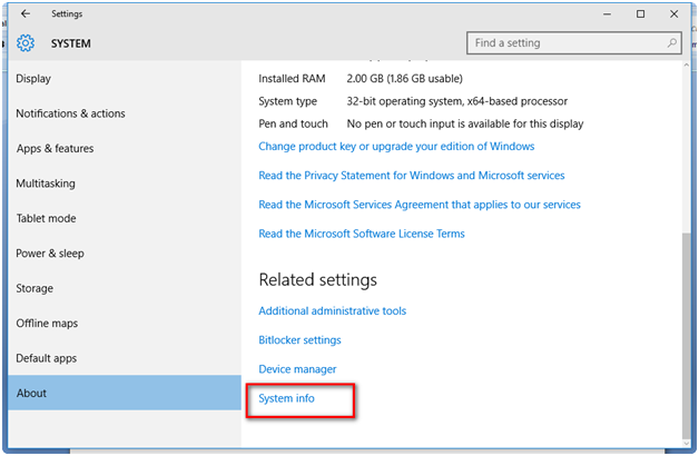 Go to the "About" option under settings and you are able to see the option of "System info." Now click it: