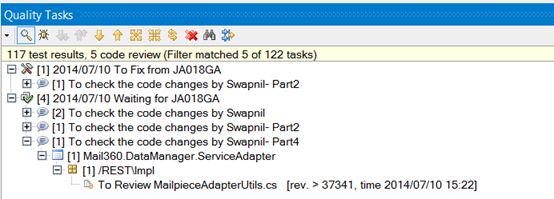 - Go to Parasoft -> Show View -> Quality Task -> Code review button. This will show all the Code Review tasks as shown below.