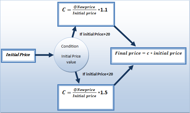 Where C is the periodic growth price ratio multiplied by a constant that depends on whether the price is greater or less than 20, the final price will be the initial one multiplied by the C coefficient.