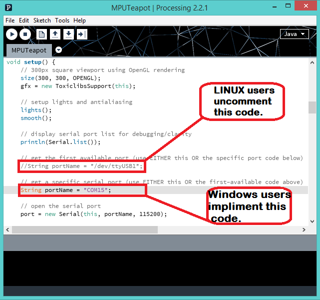 Figure 4: Editing the Processing file for MPU 6050