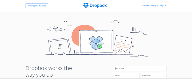 The Dropbox's main page has utilized the empty space quite beautifully. The design is simple yet fulfills the majority of measures of a good design.