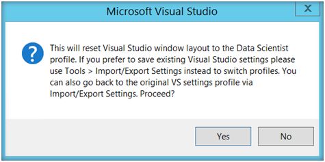 Click yes. This will reset the Visual Studio layout to the snapshot, shown below: