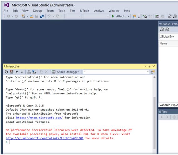 We can test its functionality by using normal arithmetic operations. However, the console is less interactive. Hence, let’s spin up Visual Studio IDE and install R Tools for Visual Studio (RTVS), which is a highly flexible and a mature environment to implement R Programming. You can get the executable from