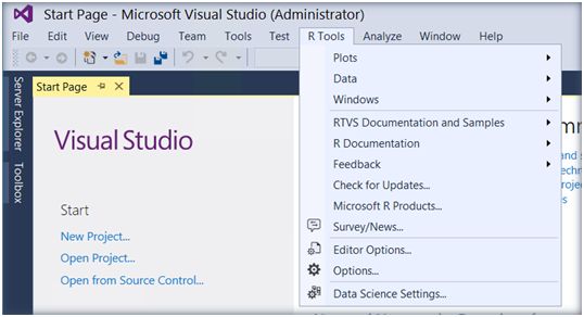 - Install R tools in Visual Studio, which will help us to work with the data, using R programming.