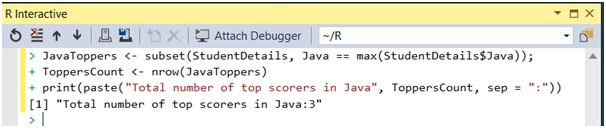- JavaToppers<- subset(StudentDetails, Java == max(StudentDetails$Java));