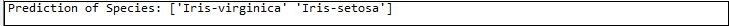 - print("Prediction of Species: {}".format(prediction))