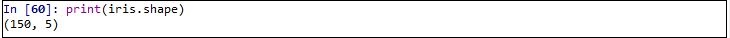 There is a data frame contains 150 samples under the 5 columns.