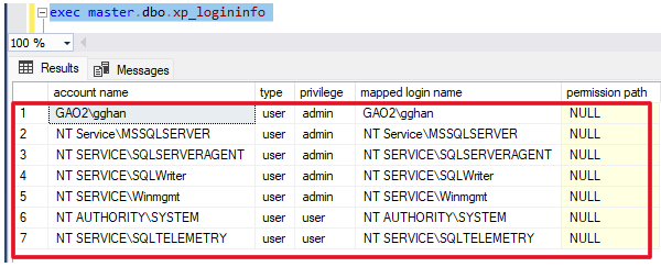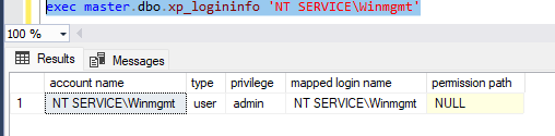 exec master.dbo.xp_logininfo 'NT SERVICE\Winmgmt'