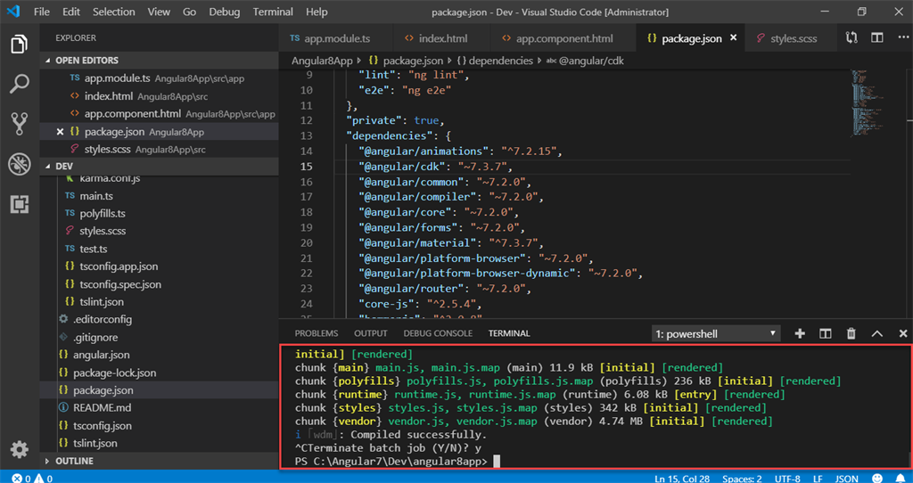 In this step, you need to install Angular Material, Angular CDK, and Angular Animations. For this, you can use either the npm or yarn command-line tool to install packages. Run the command as mentioned below.