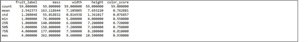 - feature_names = ['mass', 'width', 'height', 'color_score']