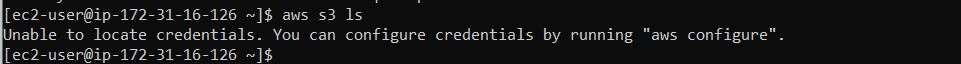 Now if we access the S3 from our EC2 instance, we are not able to see the S3 buckets directly, for this we have to create the role and assign the policies and then modify the IAM access for this instance