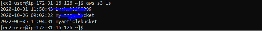 Now we have the policies to access the S3 bucket to the private subnet EC2 instance and if we run the following command again, you can see all the buckets existed in the S3 bucket and myarticlebucket is also there which we created earlier.