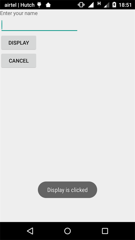 Here, we have two Button views, Display and Cancel. We can register the button click events, using an anonymous class.