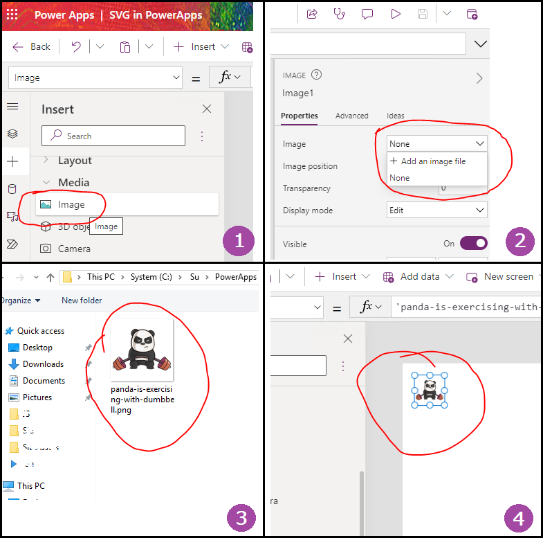 Coming back to Power Apps, while developing app in our Power Apps, we generally use 'Image' control to insert any image like below and usually add the image file in Power Apps gallery for further use of image.