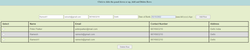 <div id="flip1" style="background-color:#b4d8d9; height:30px;margin-top:20px; font-weight:bold;">Click to slide the panel down or up, Add and Delete Rows</div>