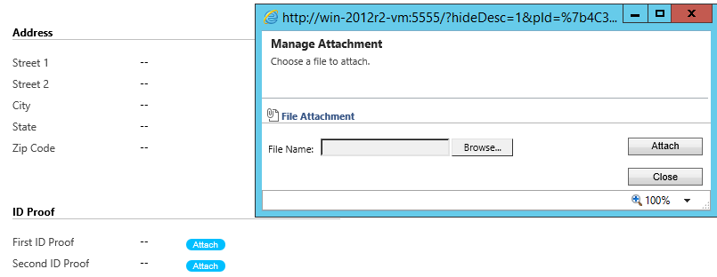 Now, after saving and publishing our changes, it will allow us to add an attachment on the click of an attachment button after saving the record, as shown below: