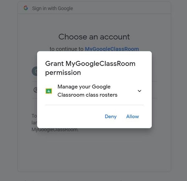 From the above figure you can notice on the reauthenticate Google prompt the user permission to allow the API to fetch the class roster details.