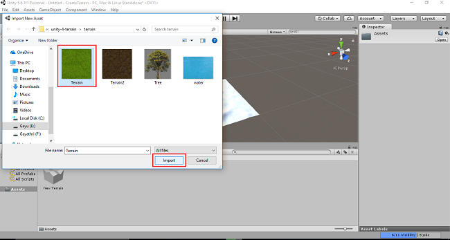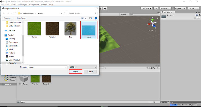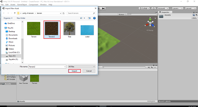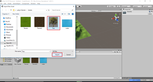 Already I have to download Terrain, Tree, water images. Now I select Terrain image. Click on the Import button.