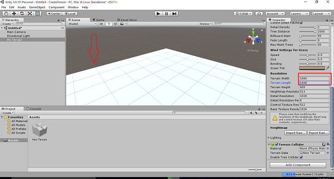 Set the Terrain width and length is 1000. Terrain length and width can be increased.