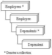 We have chosen to express our business objects (or middle tier) as a set of hierarchical objects. This allows us to iterate over our data in a very natural way. XML is such a nice way to represent data because of its ability to represent hierarchical data. Our employee-dependent relationship is hierarchical, so why not express our middle tier hierarchically also?