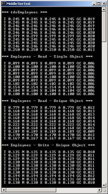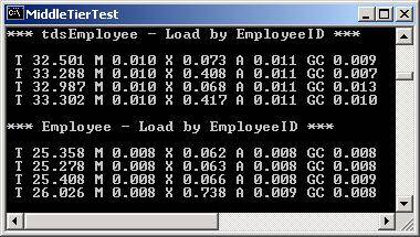 The Employee collection completed the task in only 40% of the time it took the tdsEmployees collection to do the same amount of work. Garbage collection also was helped by the ObjectCreation hint, going from .020 in the tdsEmployees test to .006 in the Employees collection.