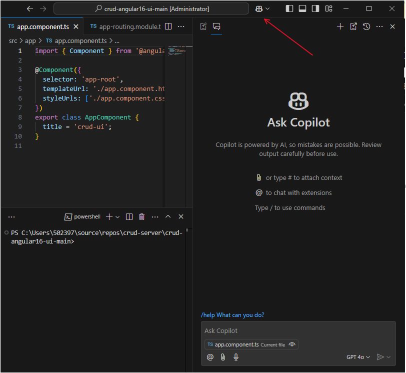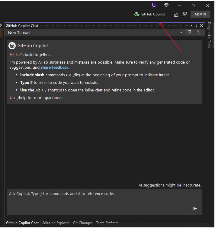 In Visual Studio:Click GitHub Copilot on the right top corner:
