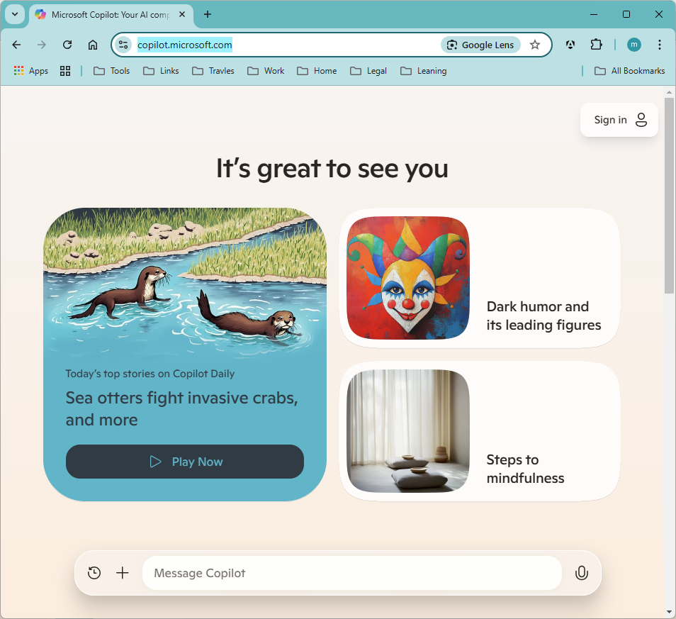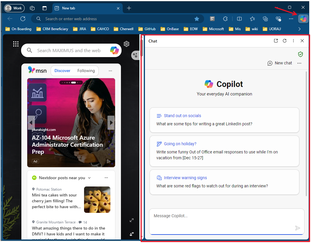 In Edge, Click the Copilot Button on the right top corner, this will open a copilot panel on the righ in the Edge Browser: