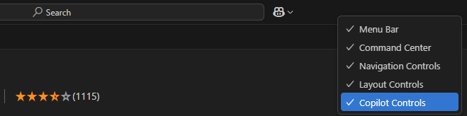 If you cannot see the Copilot Icon, Right Click the status bar => Choose Copilot Controls