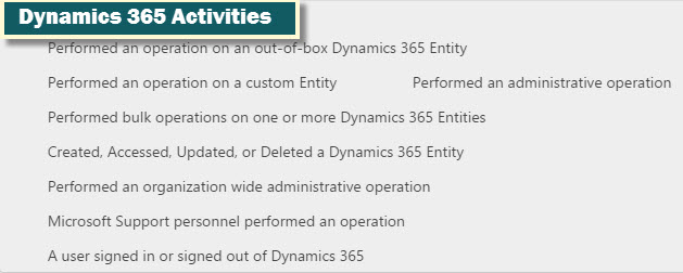 Below are the various activities defined for alerts that you can choose to trigger for selected activity.