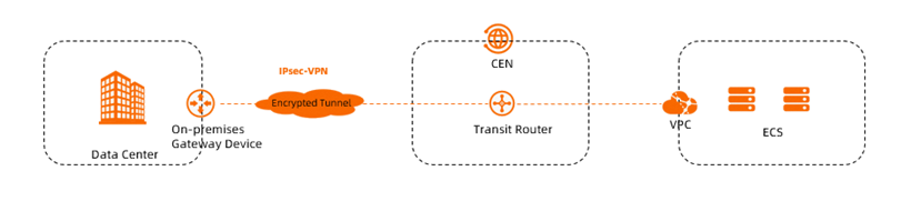 IPSec-VPN is a widely adopted protocol that creates secure tunnels over public internet infrastructure. It encrypts data packets at the network layer (IP layer), ensuring the confidentiality and integrity of data in transit between your on-premises network and Alibaba Cloud VPC.