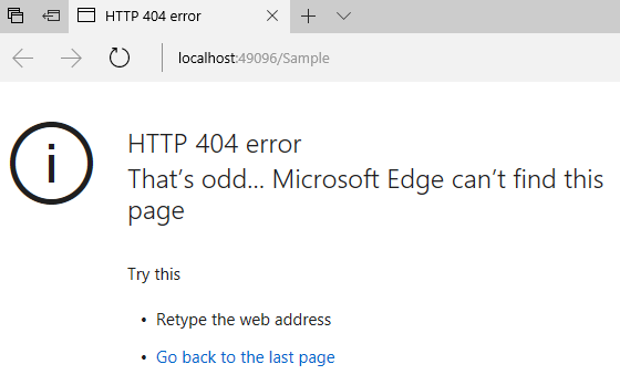 But as soon as we append the @page in our newly added Sample.cshtml page, things will work as expected.