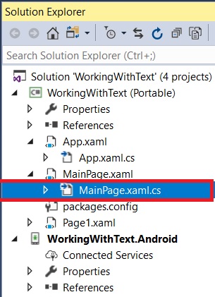 Open Solution Explorer >> Project Name (Portable) >> MainPage.xaml.cs. Double click foopeningng the design view of this page.