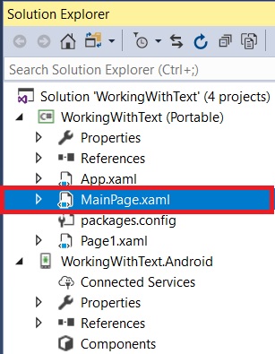 Open Solution Explorer >> Project Name (Portable) >> MainPage.xaml. Double click for opening the design view of this page.