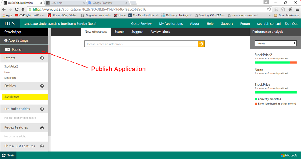 Intent means just what we desire and what is our intention so my intention is I would like to ask my Bot "what about msft" or "what is the price of msft stock".